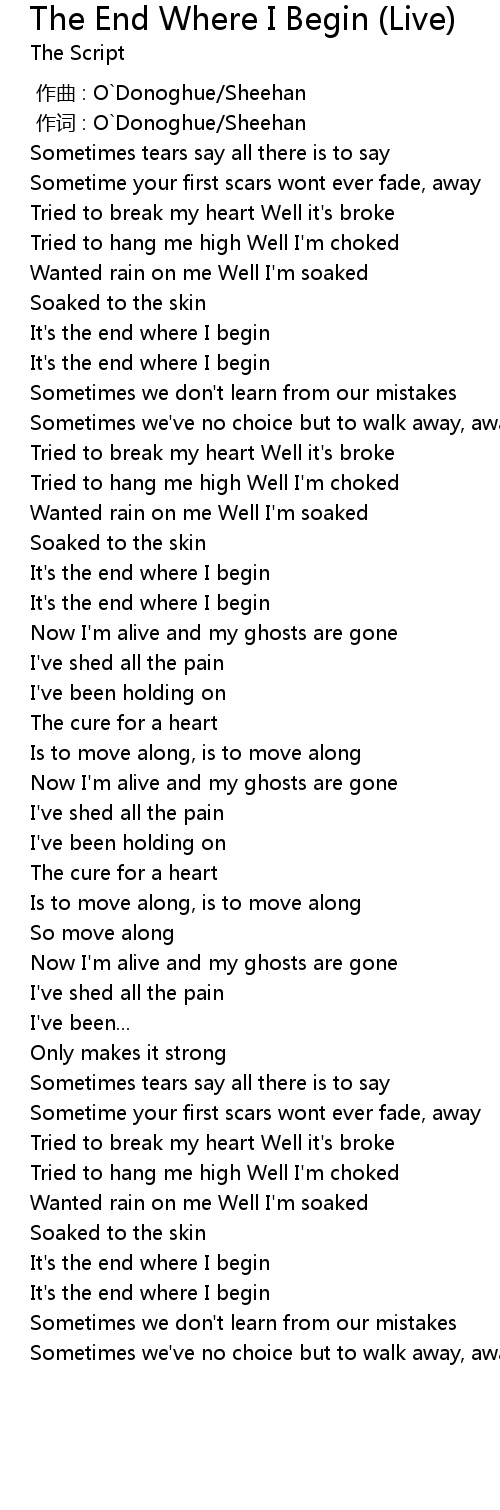 | [03:03.385] | It' s the end where I begin |
