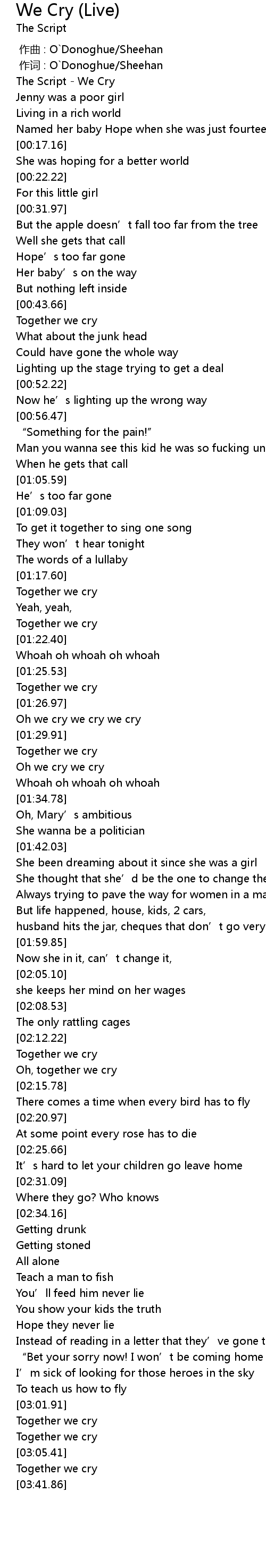 | [00:03.53] | The Script - We Cry |