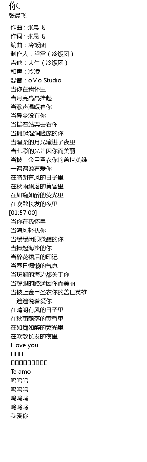 | [00:00.000] | 作曲 : 张晨飞 |