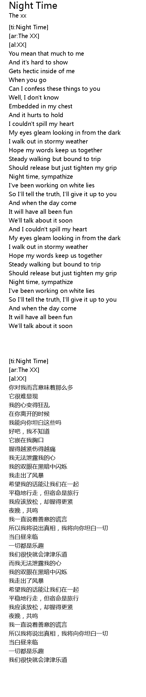 | [01:54.46] | So I'll tell the truth, I'll give it up to you |