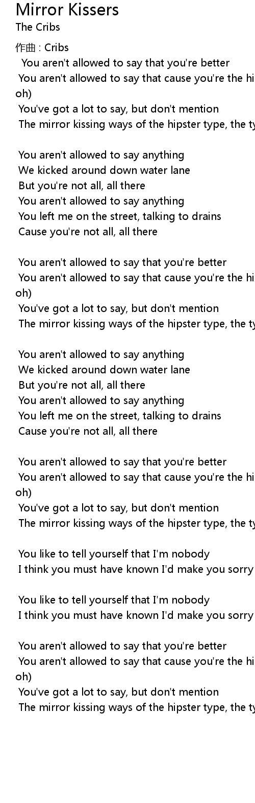 | The mirror kissing ways of the hipster type, the type whoa oh | |