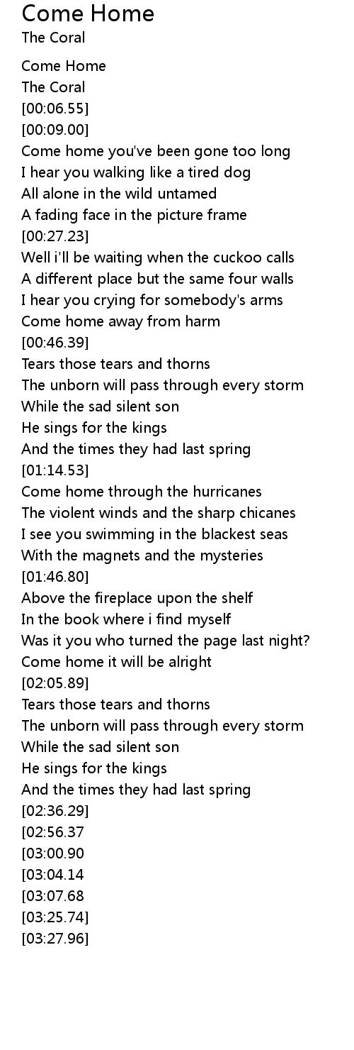 Come home you've been gone too long |