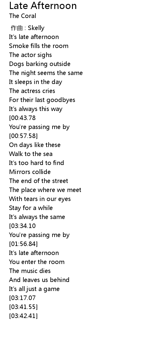 | [02:36.63] | It's late afternoon |