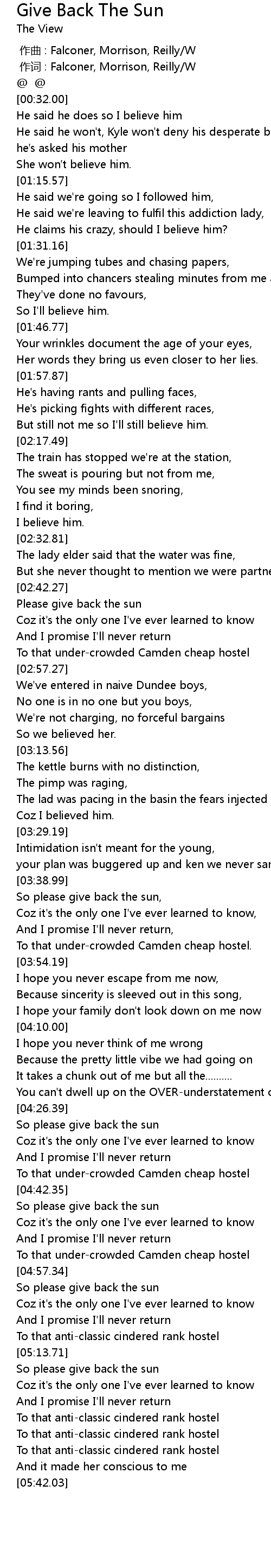 | [02:11.33] | But still not me so I' ll still believe him. |