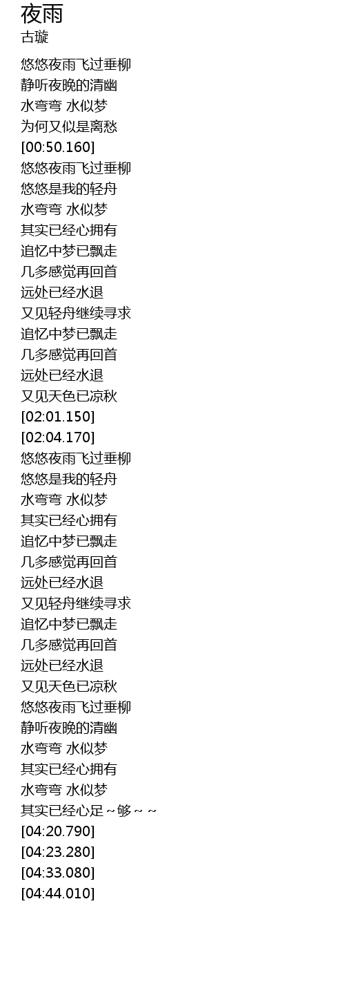 | [03:44.970] | 悠悠夜雨飞过垂柳 |