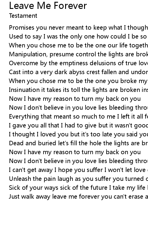 Just walk away leave me forever you can't erase all the damage you've done |