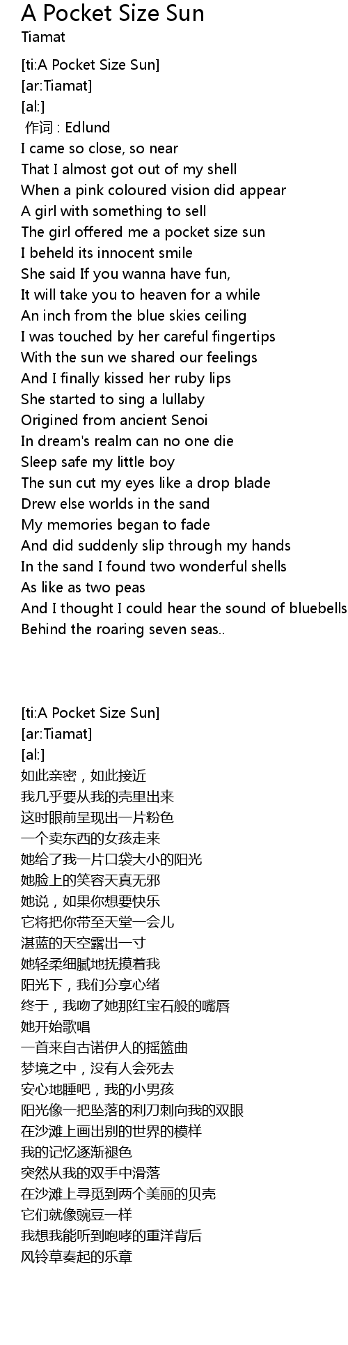 | [03:44.18] | The sun cut my eyes like a drop blade |