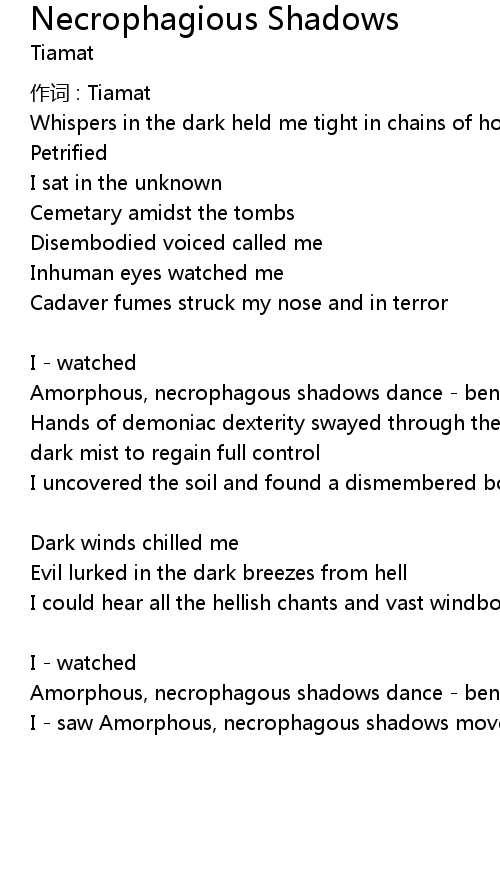 | I - saw Amorphous, necrophagous shadows move - beneath the cursed evil moon |