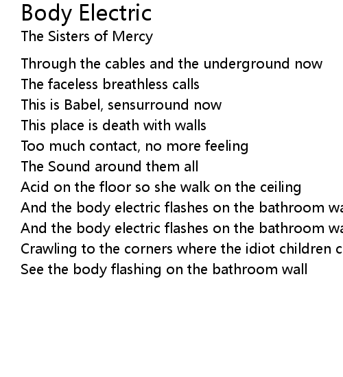 | And the body electric flashes on the bathroom wall | |