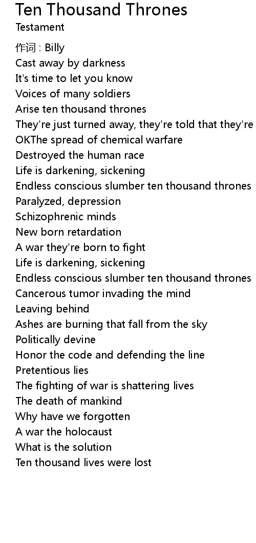 | Song | Ten Thousand Thrones |