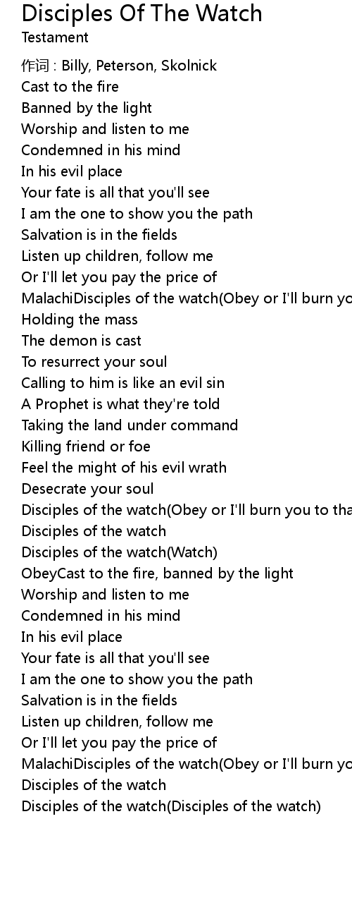 | Disciples of the watch Obey or I' ll burn you to that cross | |