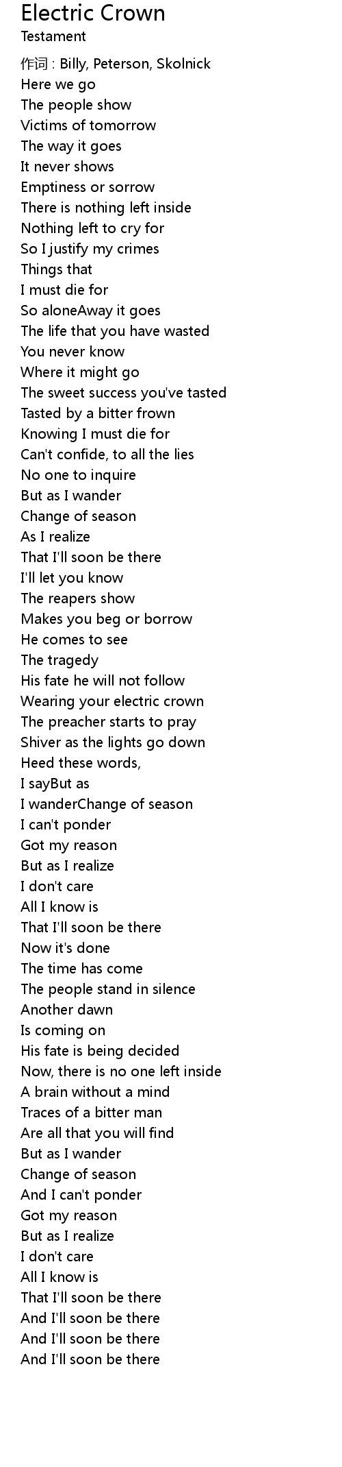 | 作词 : Billy, Peterson, Skolnick | |