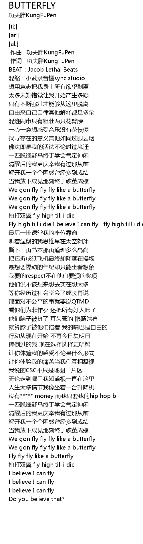 | [00:54.67] | We gon fly fly fly like a butterfly |