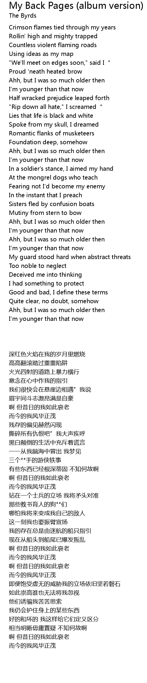 | Song | My Back Pages (album version) |