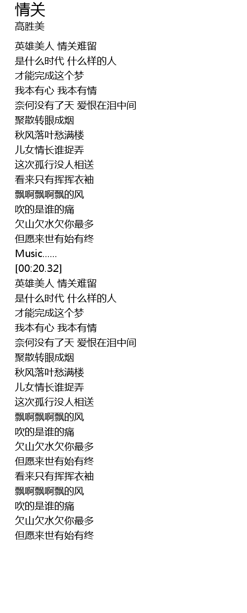 | [02:34.99] | 英雄美人 情关难留 |