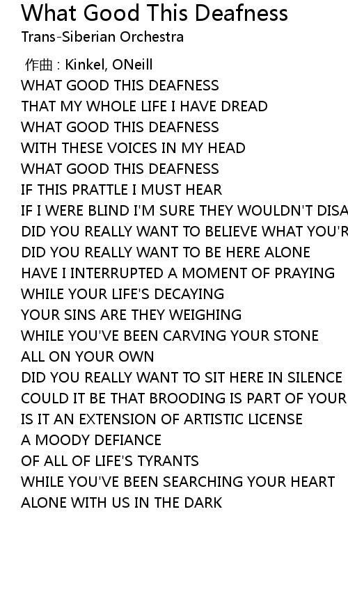 | [00:12.18] | WHAT GOOD THIS DEAFNESS |