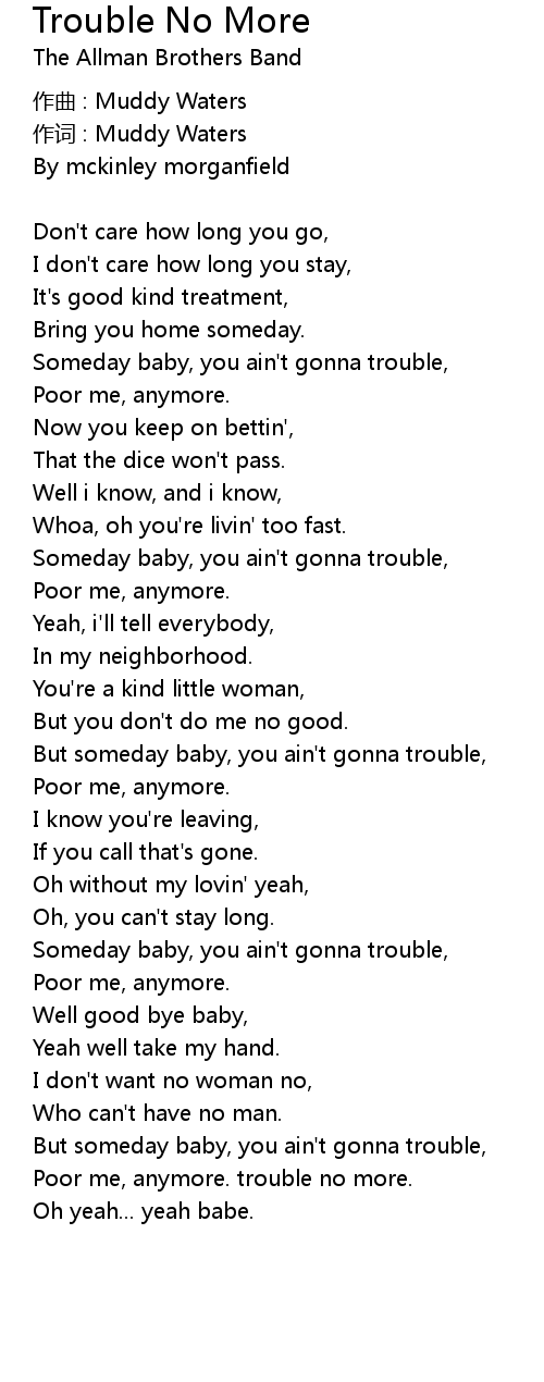 | Someday baby, you ain' t gonna trouble, | |