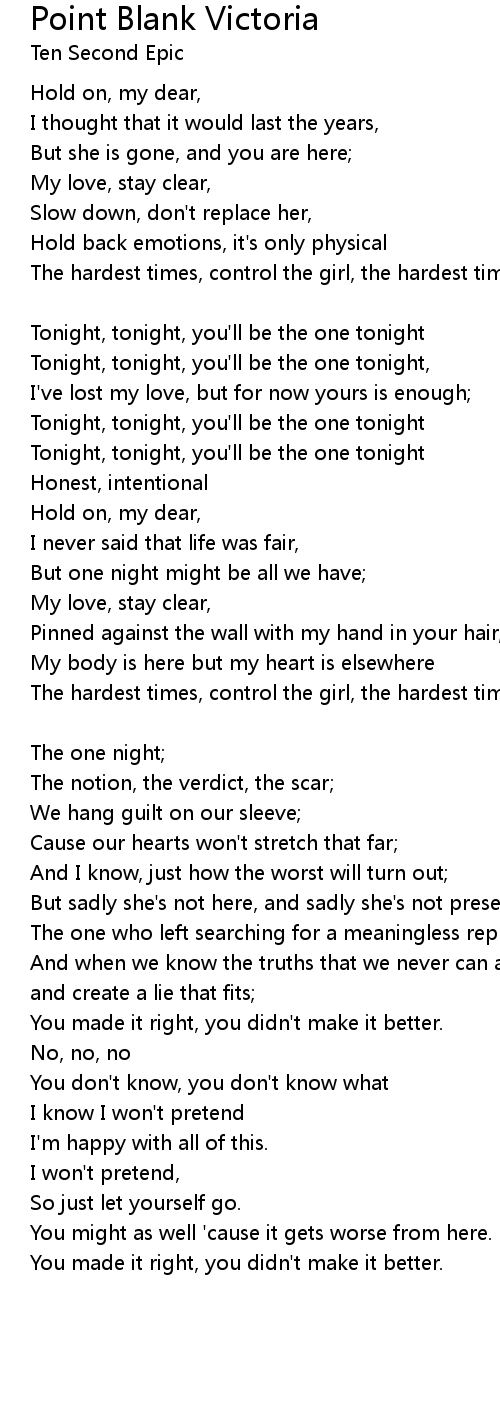 Tonight, tonight, you'll be the one tonight, |