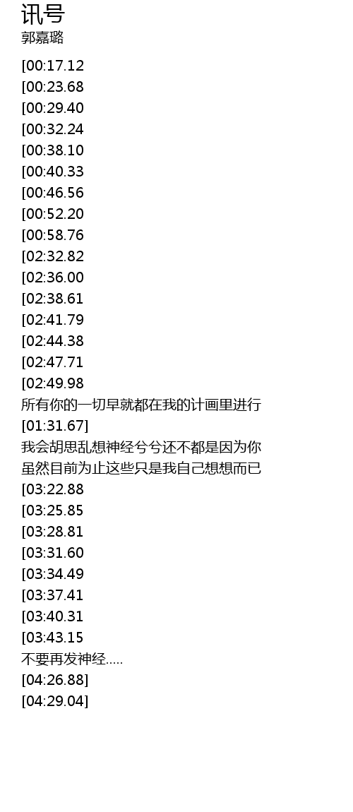 | [02:21.22][00:52.20] | 想把你变成一个 讯号 |