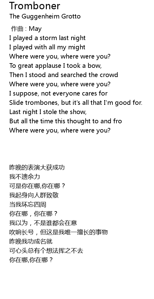 | [00:46.62] | Slide trombones, but it' s all that I' m good for. |