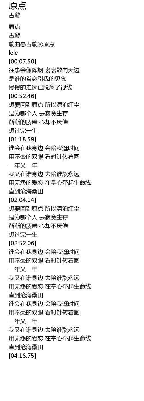 | [00:52.98] | 想要回到原点 所以漂泊红尘 |