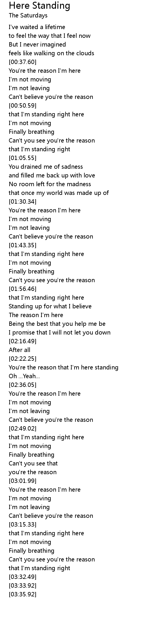 You're the reason that I'm here standing |
