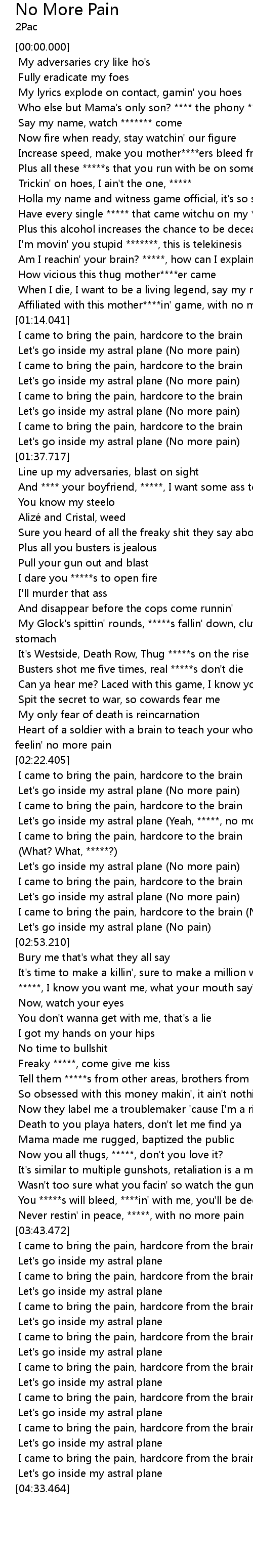 | [01:10.159] | Affiliated with this mother****in' game, with no more pain |