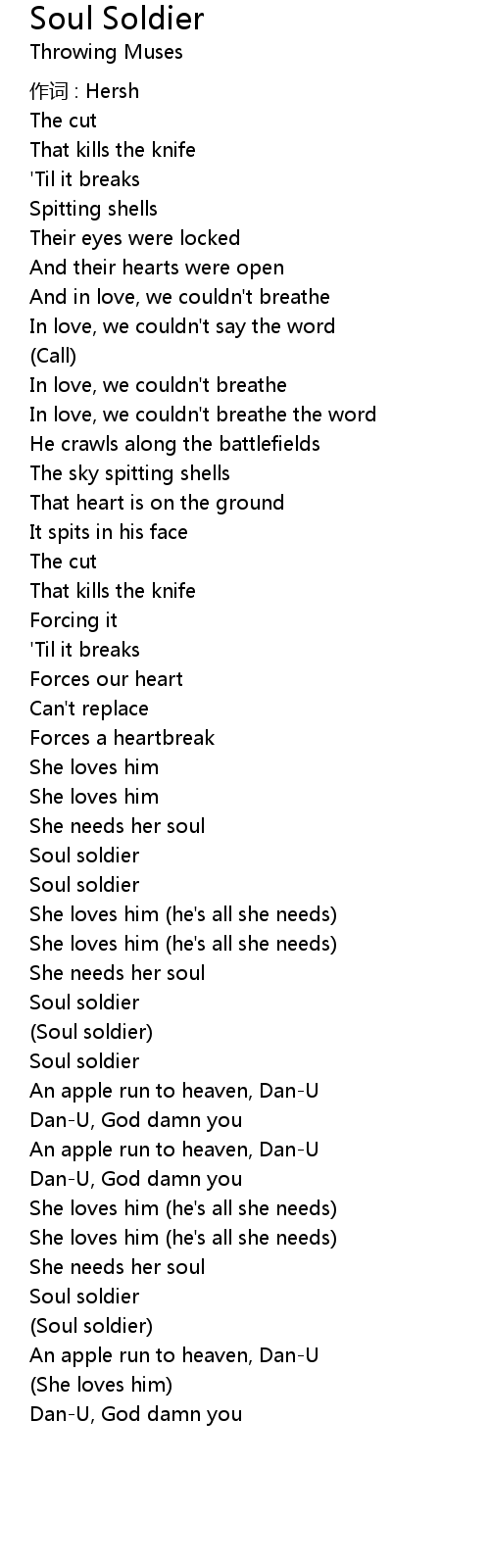 | Song | Soul Soldier |