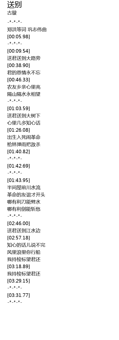 | [02:50.32] | sòng jūn sòng dào jiāng shuǐ biān |