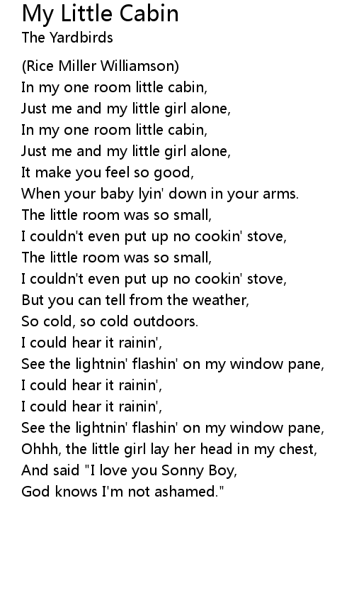 In my one room little cabin, |