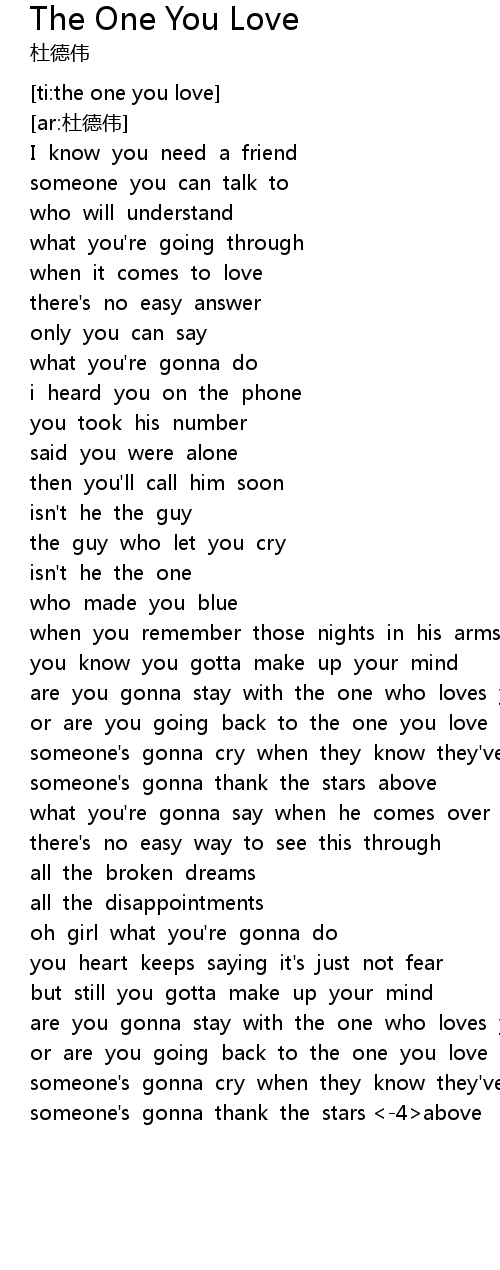 | [01:32.91] | are you gonna stay with the one who loves you |