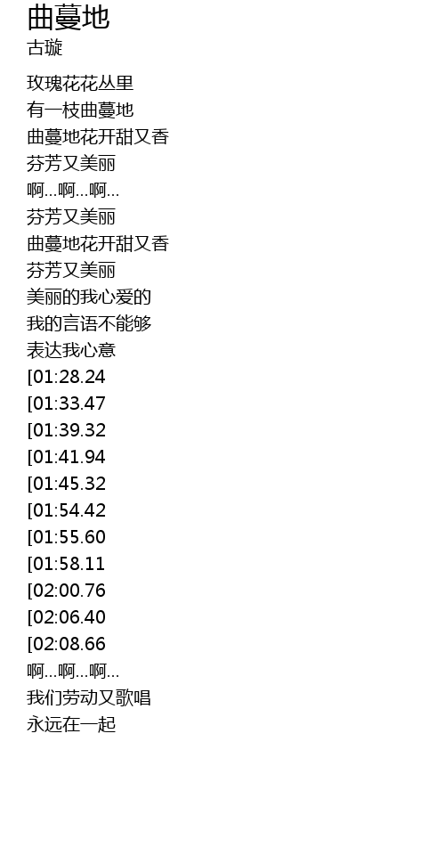| [01:02.10] | 曲蔓地花开甜又香 |