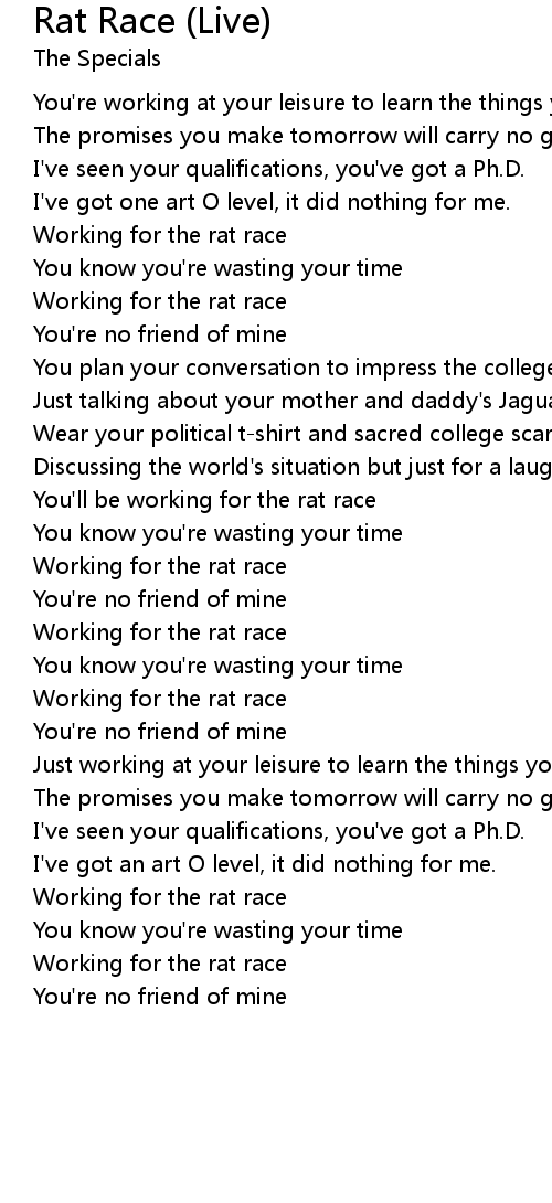 You'll be working for the rat race |