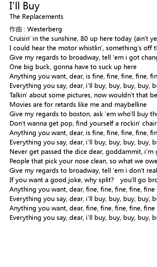 | Everything you say, dear, i'll buy, buy, buy, buy, buy, buy, i'll buy |