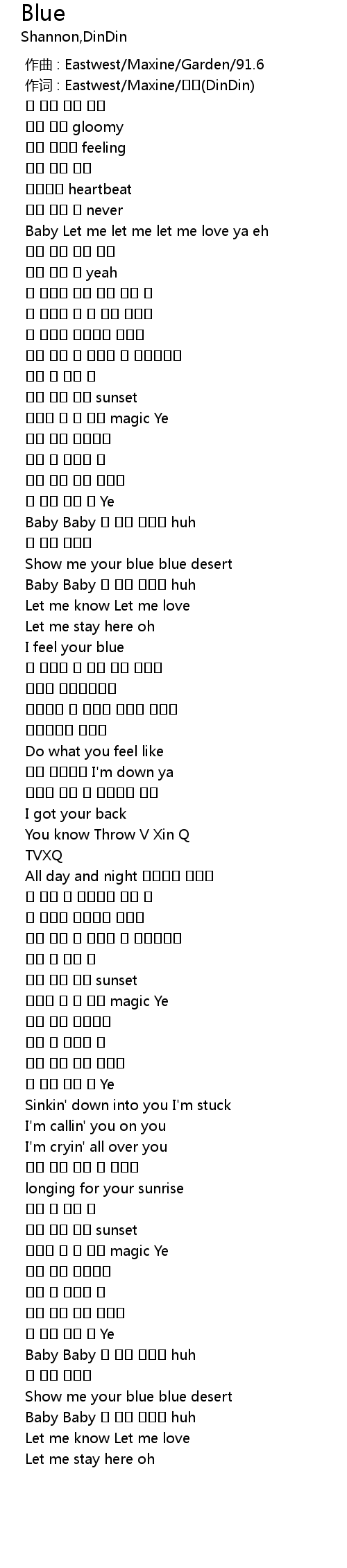 | [00:01.000] | 作词 : Eastwest/Maxine/딘딘(DinDin) |