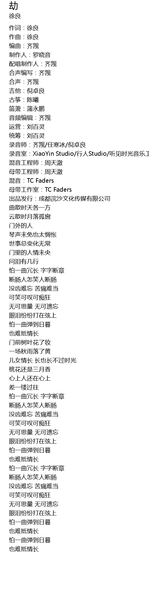 | [00:06.05] | 出品发行:成都浣沙文化传媒有限公司 |