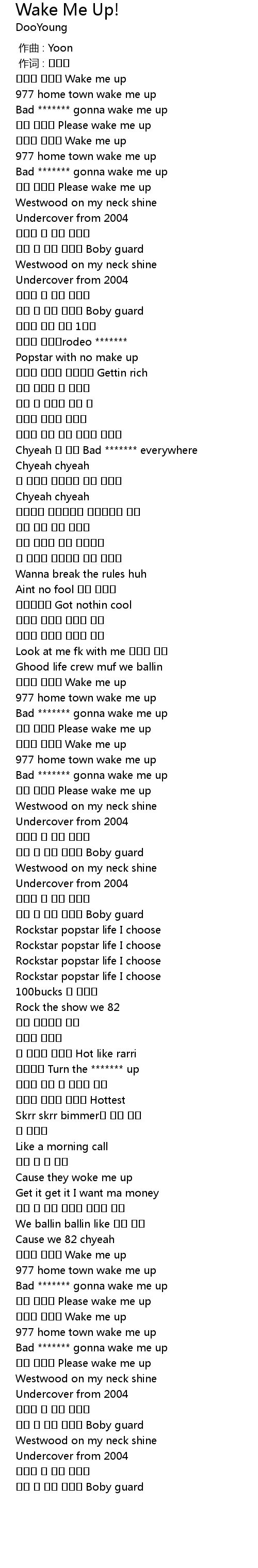 | [02:38.50] | Bad ******* gonna wake me up |