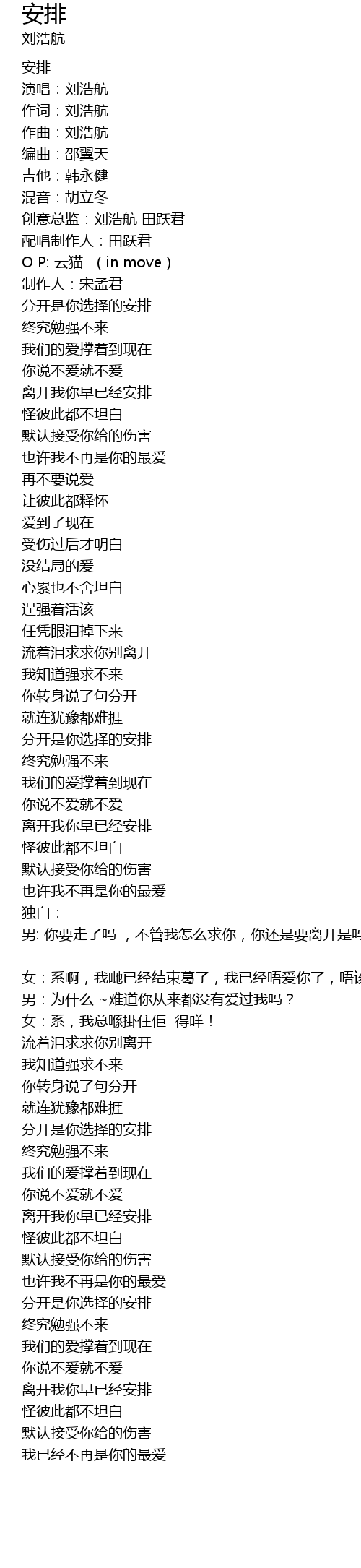 | lí kāi wǒ nǐ zǎo yǐ jīng ān pái | |