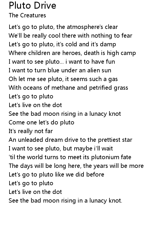 Let's go to pluto, the atmosphere's clear |