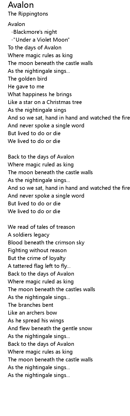 To the days of Avalon |