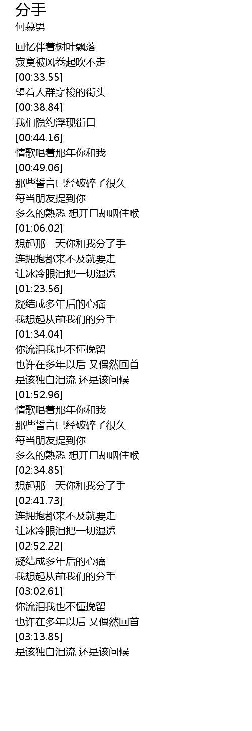 | [02:36.71] | xiǎng qǐ nà yì tiān nǐ hé wǒ fēn le shǒu |