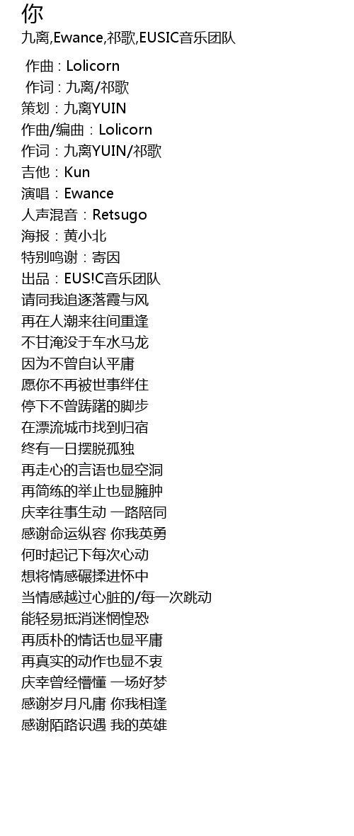 | [00:07.12] | 出品:EUS!C音乐团队 |