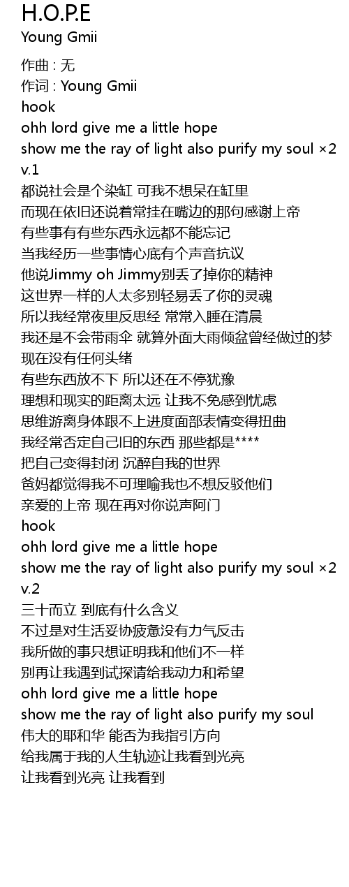 | 作词 : Young Gmii | |