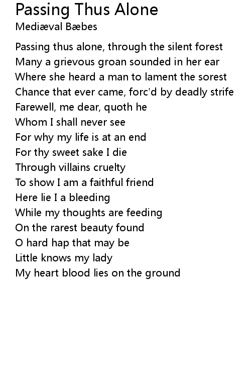 | Song | Passing Thus Alone |
