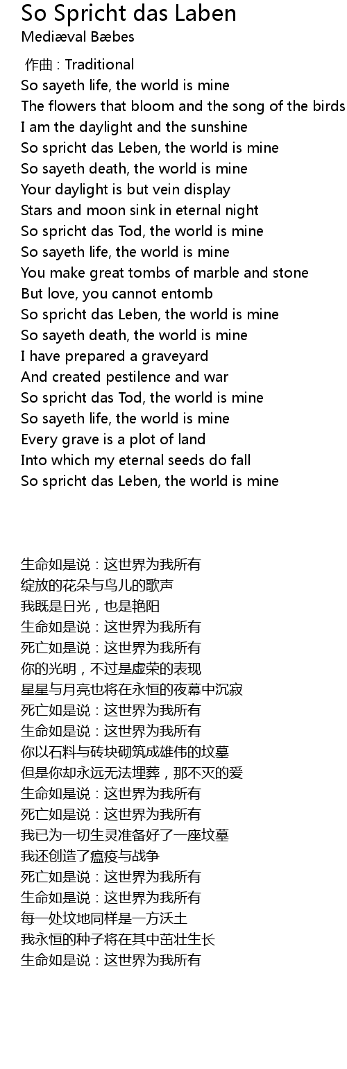 | [00:41.00] | So spricht das Tod, the world is mine |