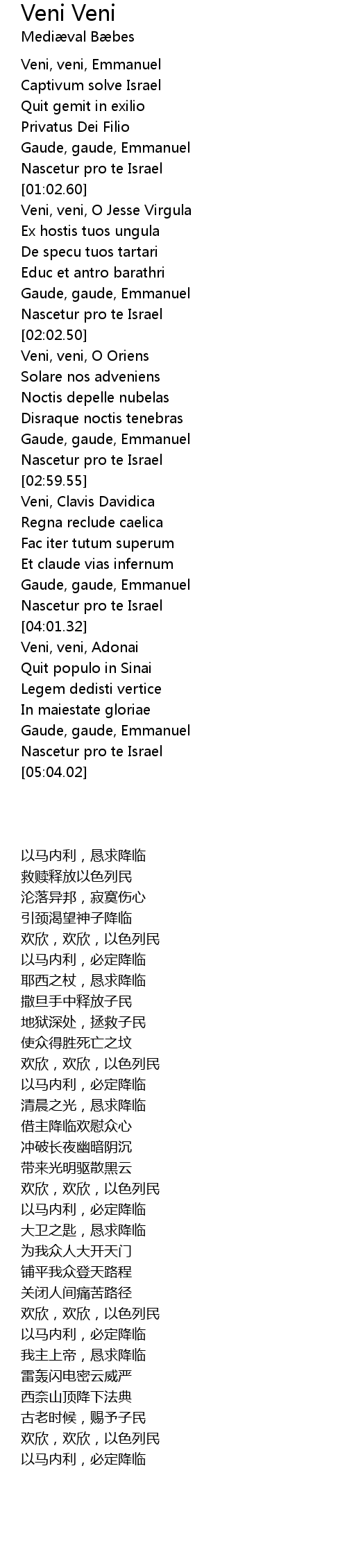 | [04:03.58] | Veni, veni, Adonai |