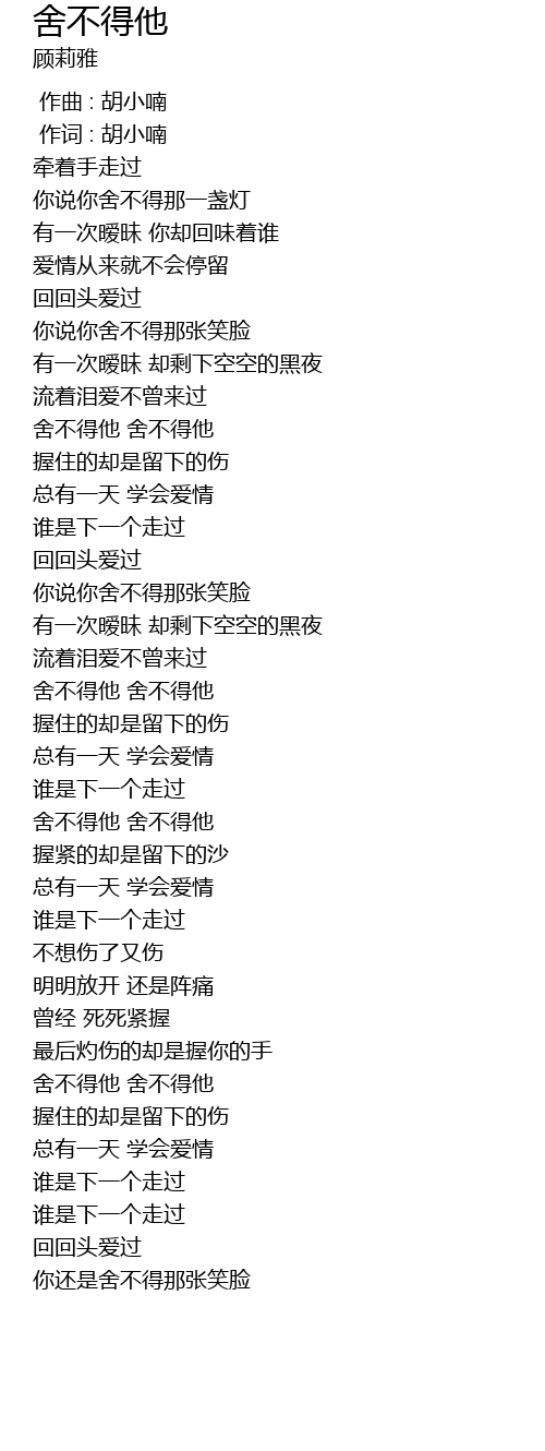 | [01:56.18] | 舍不得他 舍不得他 |