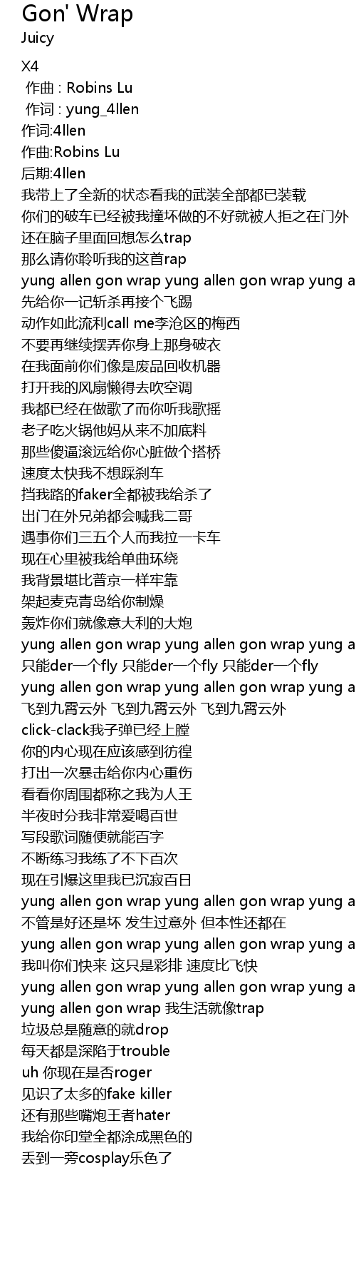 | [01:52.00] | yung allen gon wrap yung allen gon wrap yung allen gon wrap |
