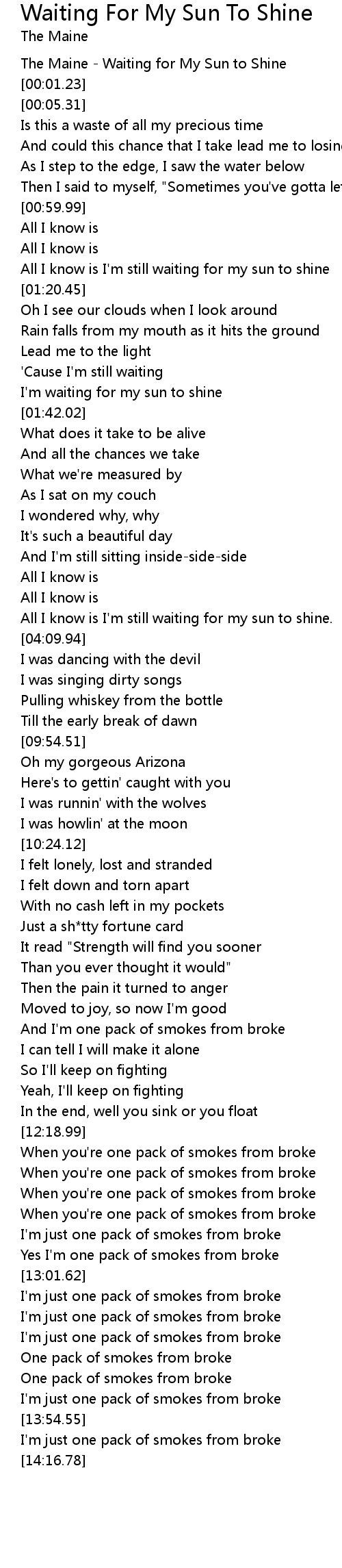 | [00:00.00] | The Maine - Waiting for My Sun to Shine |