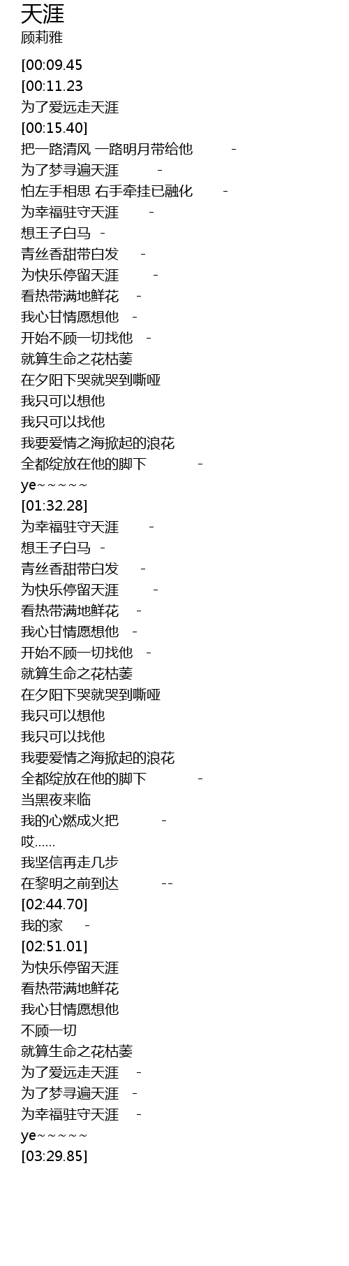 | [03:10.45] | wèi le mèng xún biàn tiān yá |